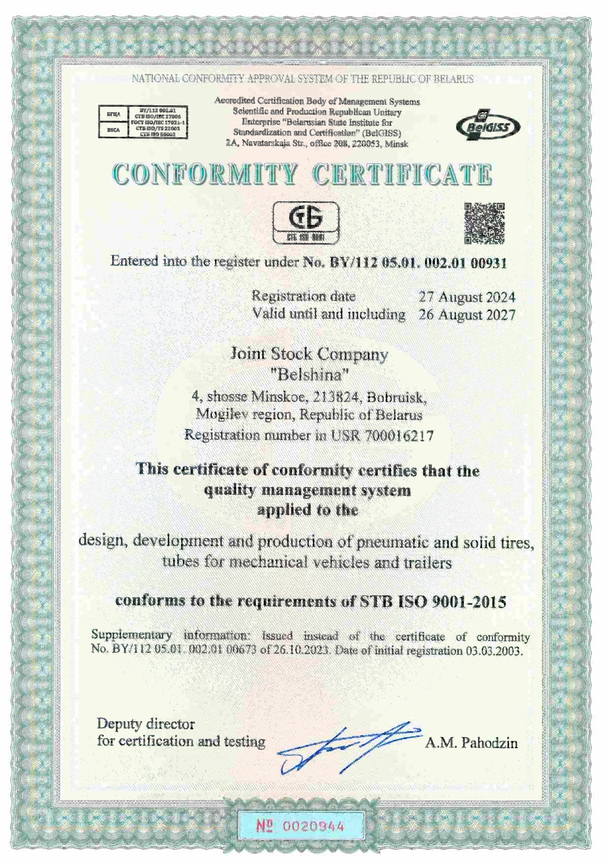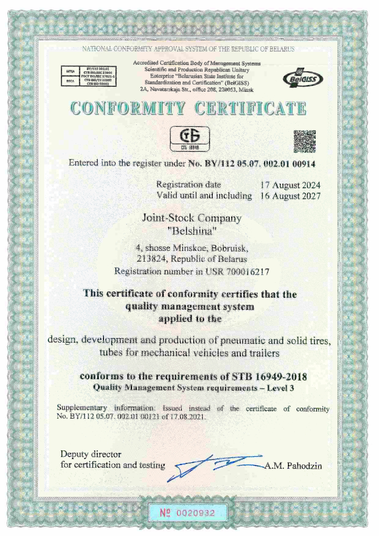 Certificates of conformity